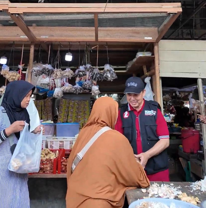Norsan yang menyambangi para pedagang itu disambut antusias. Mereka berbincang soal perputaran perekonomian hingga kebutuhan pembangunan infrastruktur pasar.